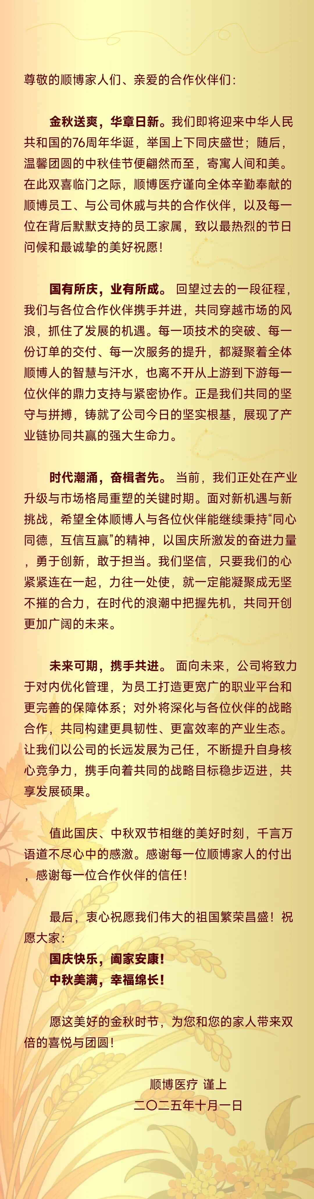 家國(guó)同慶,雙節(jié)共歡 | 致順博家人與合作伙伴的2025年國(guó)慶暨中秋慰問(wèn)信
