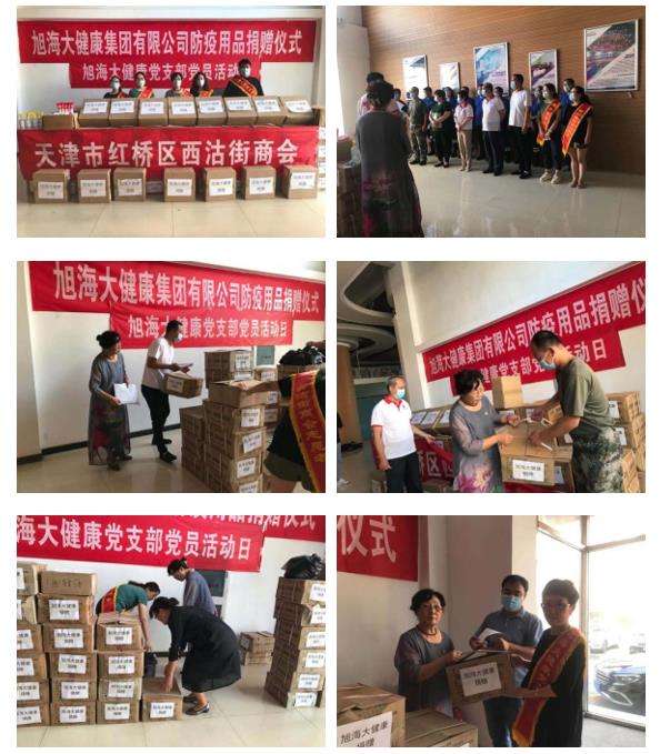 旭海大健康集團作為紅橋區(qū)“兩新企業(yè)”,主動擔當,積極履行社會責任,旭海大健康集團黨支部副書記李淑華代表旭海大健康集團總經(jīng)理王衛(wèi)剛,旭海津藥總經(jīng)理趙金民捐贈區(qū)紅十字會防疫物資,為我區(qū)社區(qū)工作者捐贈防疫消殺用品。
